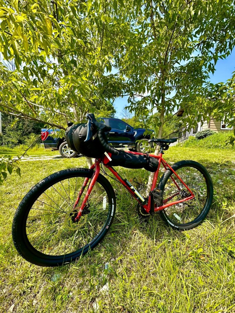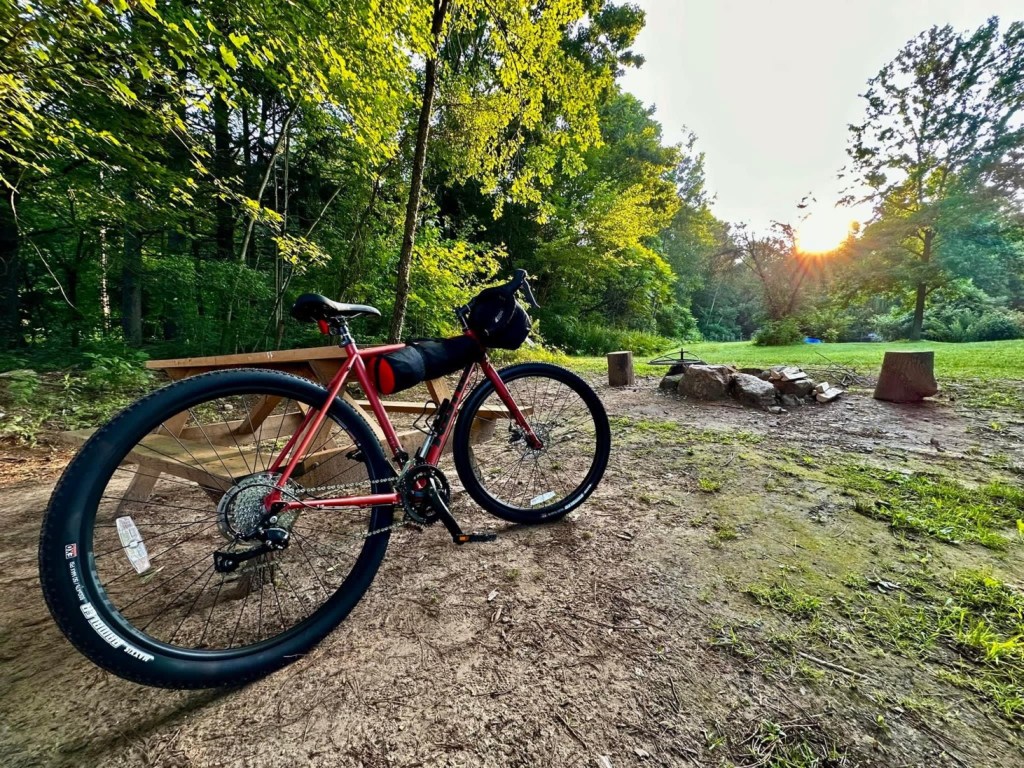 I’m as guilty as the next for coming up with grand illusions around what a bike will feel like given its make, construction, and the “normal” ride aesthetic of the brand. My higher self wants to avoid having that bias, because you can’t judge a bike by it’s cover… or however the saying goes. So, in this review, I’ll use rationalization and aim for a report of my personal experience with the Kona Rove after being gifted the opportunity to ride it for a summer bikepacking trip. Heron Head Bikes, located at 120 Morrell St. in Brantford, offered me the opportunity to test ride it on an excursion to Wilewood in Norfolk County – a forest and farm property offering fresh produce, rustic glamping, artist studios, and dedicated bikepacking sites. Located a stone’s throw from the Trans Canada Trail, my trek would take me along the TH&B rail trail through Mount Pleasant, past Scotland, and into the forested Creekside campsite booked through Hipcamp. Below is a distillation of my notes from this great riding experience.