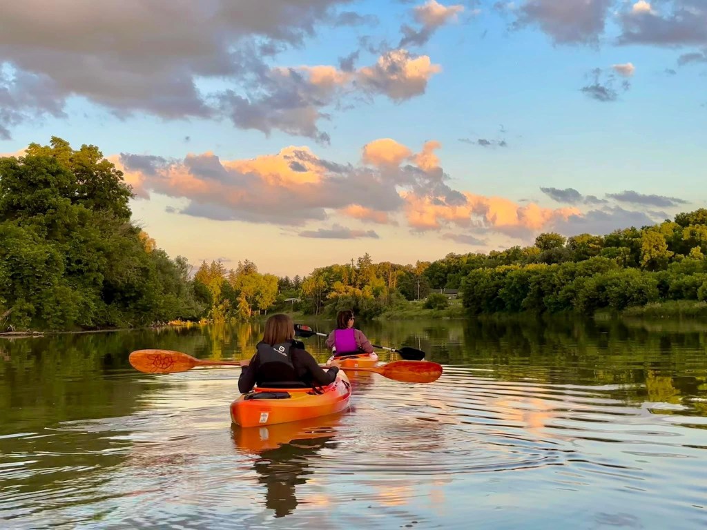 Who doesn’t?! That’s a silly question. In a guided paddle with Moonwater Creative, guests learn first that they’ll be safe on the water. The safety talk and the hands-on experience may as well be one and the same because guides are trained and certified, provide foundational information in great detail, and are always within immediate paddling distance to support the group, no matter the skill level. Second, take the expectation off your plate of being your group’s coordinator and relax and enjoy the experience of a guided paddle with a pro – great for individual bookings, a group, or the whole family! Third and finally, your guide could have first-hand knowledge of walleye, art, raccoons, smart weed, hiking trails, places to eat, blue herons, camping, wild turkeys, racing, basswood trees, you name it! This area is rich in history, biodiversity, and hidden gems that visitors wouldn’t necessarily know, and guides can point out. Every guided paddle conversation starts off from how beautiful the area can be and can end with almost any type of detail about it you may wish to learn. And learning is all part of the fun. What better way to understand and develop for an area than through a guided paddle with a local!